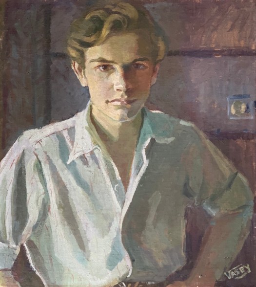In 1982, Crawford organised the dispersal of the studio of Manchester-born, Wales-domiciled portrait and landscape artist Gladys Vasey (1881-1981) about whom little was then known. I bought several canvases for what even then seemed like derisory sums. Tentative research on my acquisitions revealed that over six decades she had exhibited hundreds of paintings at the Royal Society of Portrait Painters, Society of Women Artists, and Manchester Academy of Fine Arts. In no time, I was interviewing her family and friends as well as visiting private and public collections across the UK to catalogue her works. The outcome was my first curated retrospective exhibition and accompanying publication for the National Library of Wales in 1990. Old enthusiasms die hard. I recently picked up at auction Vaseyās 1945 portrait of young art student Boris that 41 years ago I had lost when outbid.