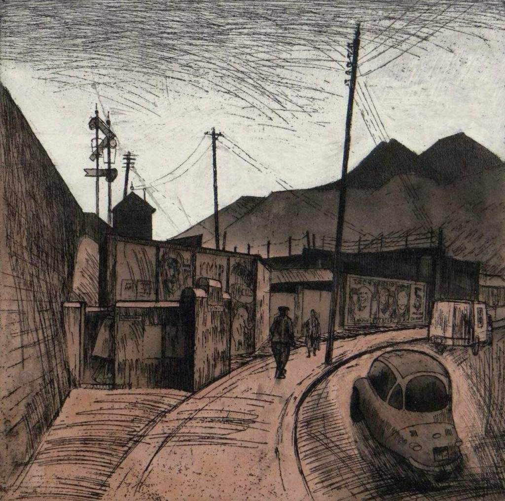 Mike learned from us that painter-printmaker George Chapman lived at nearby Aberaeron. George had built his reputation in the 50s and 60s with his gritty depictions of the industrialised landscapes of the south Wales valleys. Yet despite his many achievements, he had not gained lasting critical acclaim. We visited the studio where Mike offered George an exhibition at Uppingham, and I was tasked to make the selection and write the catalogue.